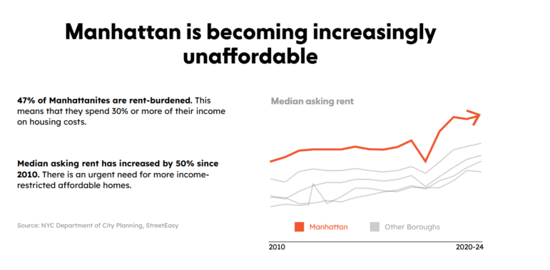 Without access to affordable housing, CB5 risks becoming an exclusive enclave, inaccessible to the very people who have historically contributed to its vibrancy and success. Maintaining a mixed-income community ensures that CB5 remains a place where people of all backgrounds can live, work, and engage in public life. LUHZ has called on the City to act decisively in addressing the affordable housing crisis by adopting a multi-layered strategy that includes increasing the supply of affordable units, preserving existing affordable housing, repurposing vacant spaces, and addressing the structural barriers to affordability. In turn, the City has delivered through monumental policy changes like City of Yes, the Midtown South Mixed Use Rezoning Plan, and the Manhattan Plan which will see significant affordable housing development across the city and in CB5.